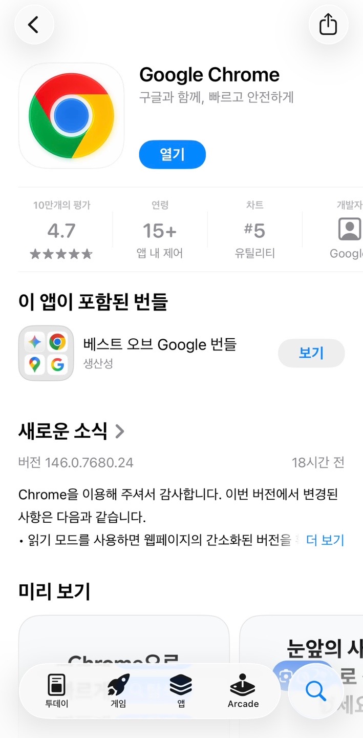 iOS 환경에 최적화된 빠른 속도와 안정적인 성능을 제공하며, 구글 계정 연동을 통해 북마크, 방문 기록, 비밀번호를 자동으로 동기화할 수 있습니다.